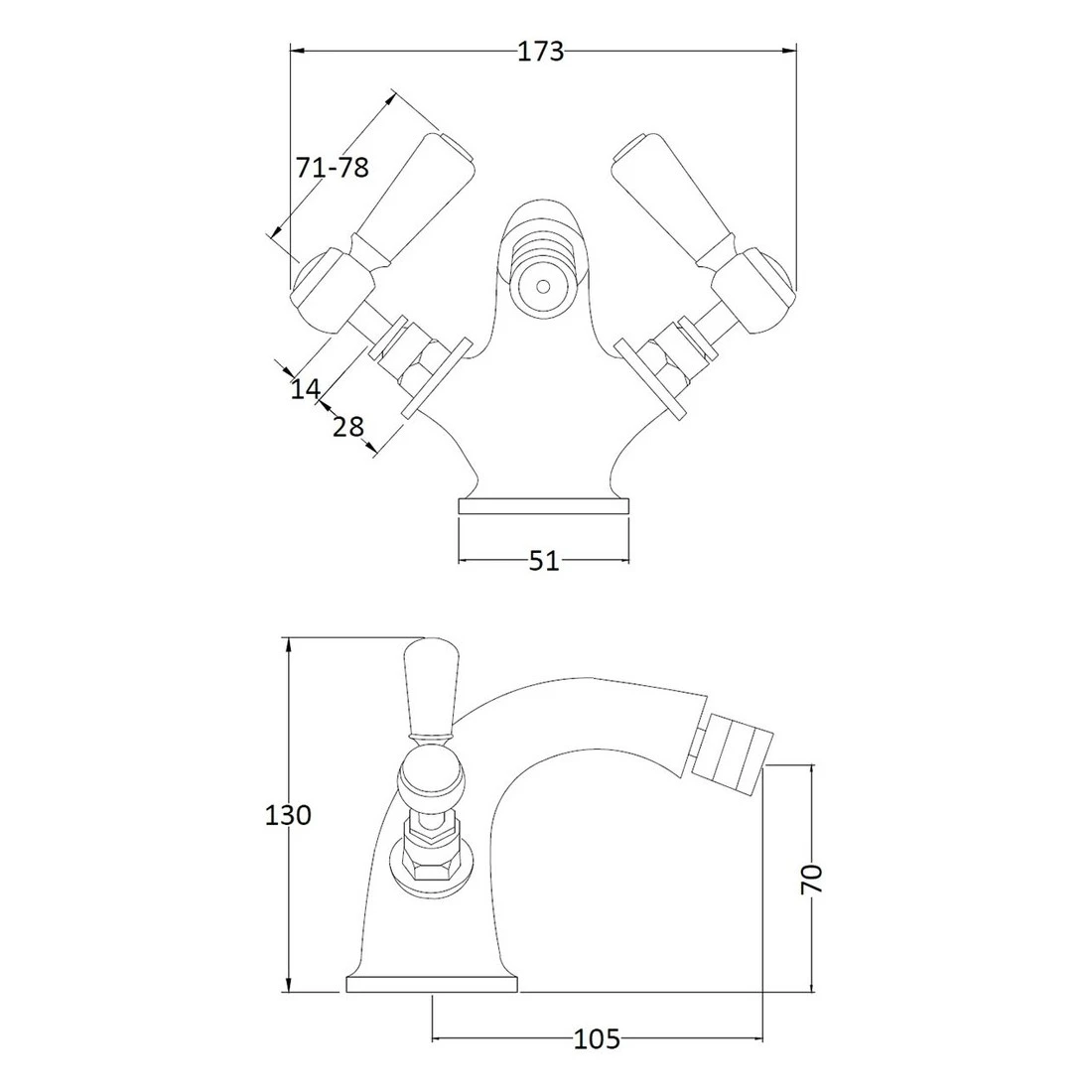 Bayswater White Mono Bidet Mixer with Lever & Hex Collar