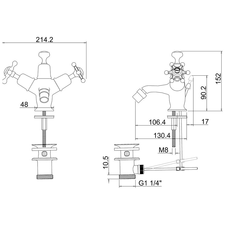 Birkenhead Bidet Mixer with Pop-Up Waste, Chrome/Black