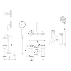 Consists of 1 x Bidet mixer, with pop up (excluding tap heads & base) (T15), 1 x Regent small single tap base (for basin & bidet monoblocs – single) (T4B), 1 x Claremont tap handles (pair) – chrome & medici (T1 MED) and 1 x Medici B indice – 22mm (ME23)
