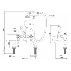 Burlington Claremont Angled Deck Bath Shower Mixer Chrome/Medici