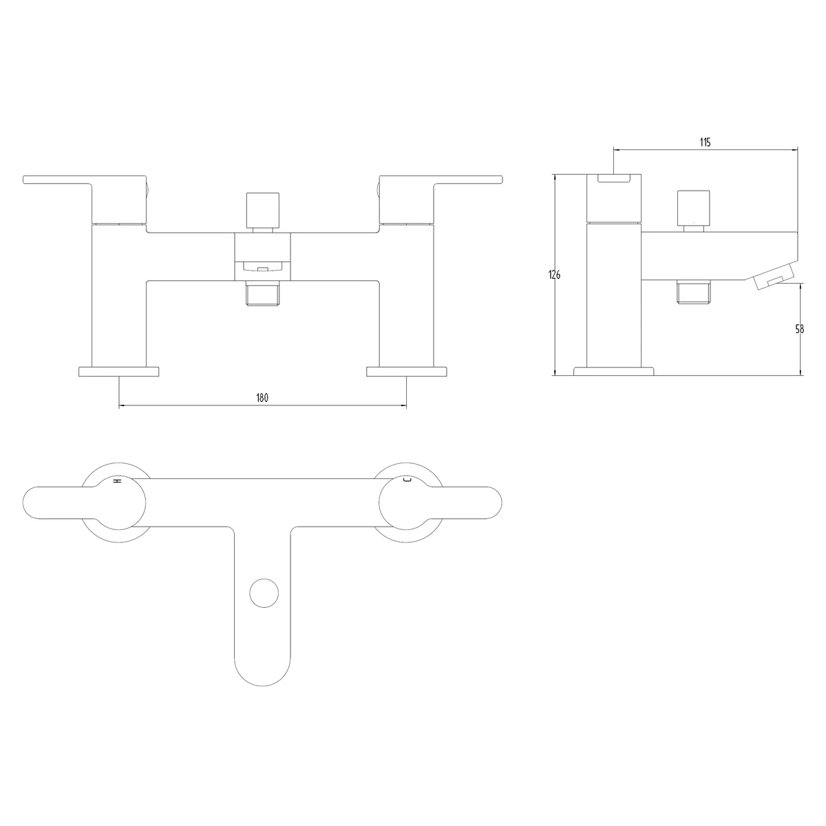 Bayswater Black Bath Shower Mixer With Crosshead & Hex Collar