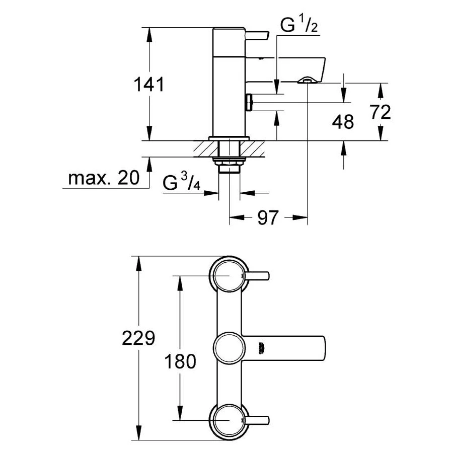 Concetto Two-handled Bath/Shower mixer 1/2″