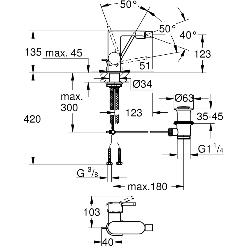 Made in Germany, this is a bidet mixer for single hole installation. It has a Grohe SilkMove ceramic cartridge, offering smooth, precise control for the life of the tap, operated via the tactile solid metal lever handle. The ball-joint aerator lets you direct the flow with precision. A useful pop-up waste set is controlled via a small rod on the tap’s rear surface. Finished in the long-lasting Grohe StarLight chrome this tap combines durability with dazzling good looks.