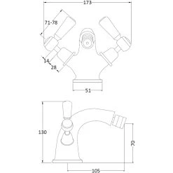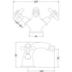 Hudson Reed Topaz Crosshead Hex Bath Shower Mixer Brushed Brass