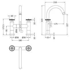 Hudson Reed Black Topaz Crosshead Bath Shower Mixer Hexagonal