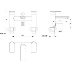 Pura Bathrooms Imex Pura Duro Bath Shower Mixer With Hose, Handset & Bracket