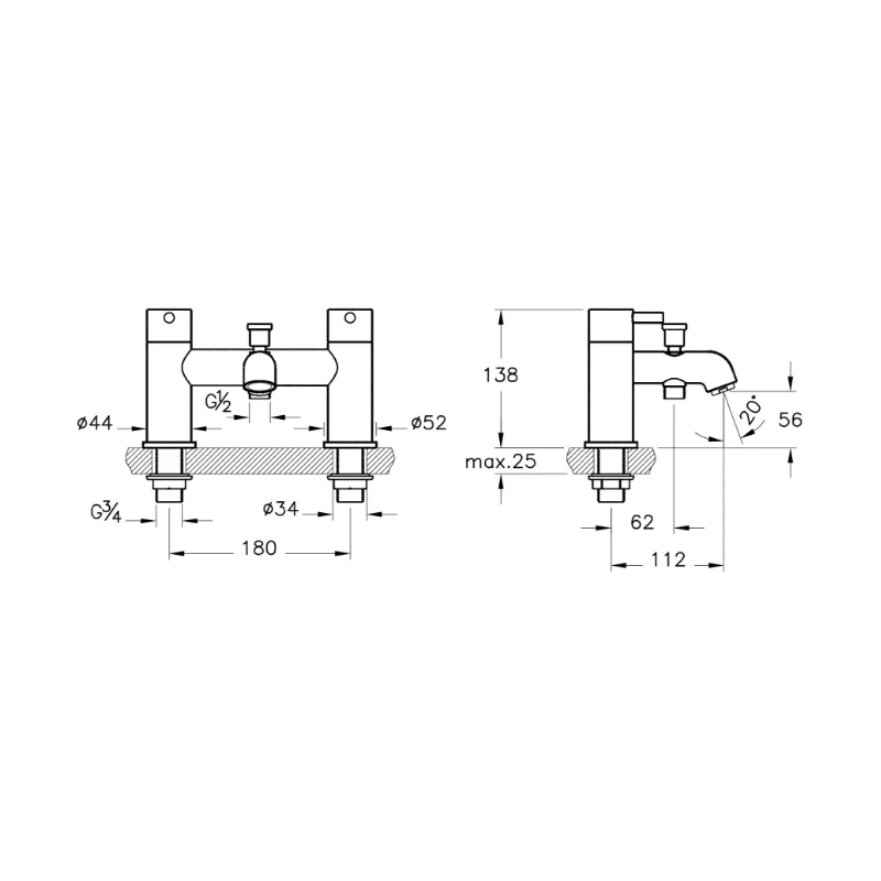 Minimax S 2 Tap Hole Bath Shower Mixer